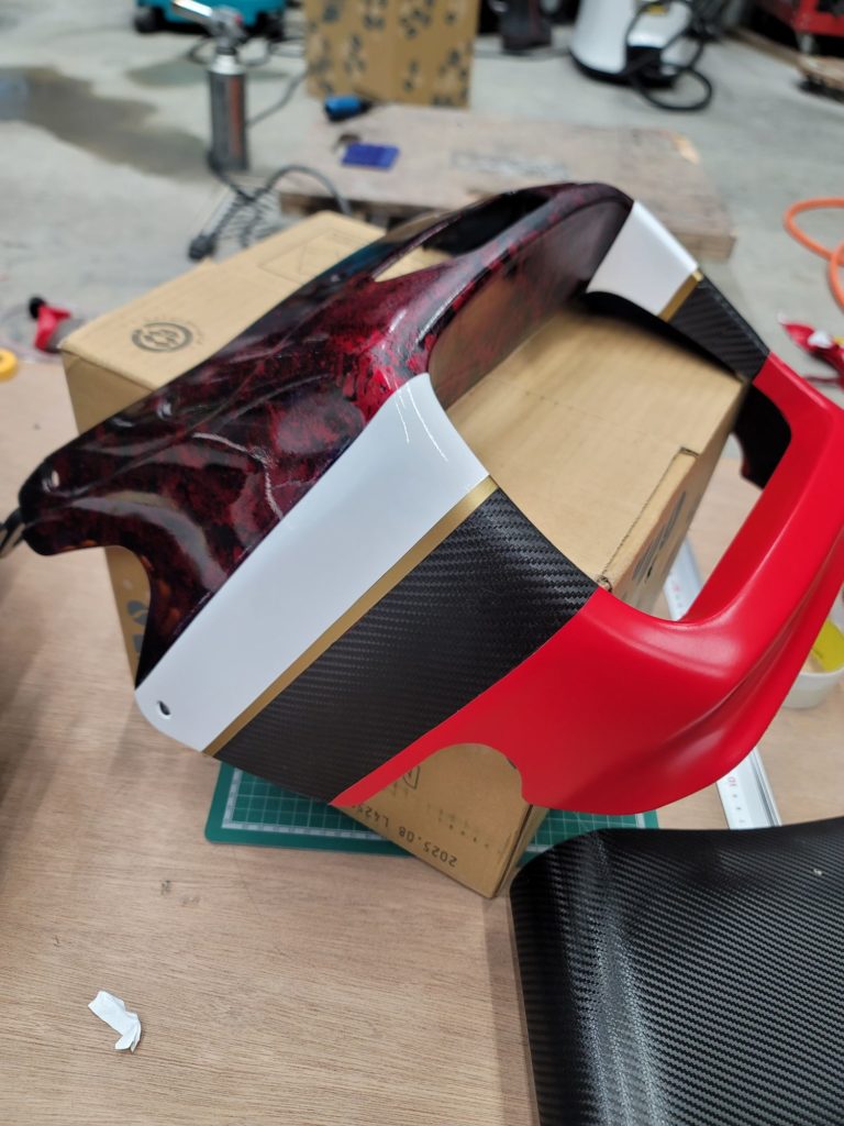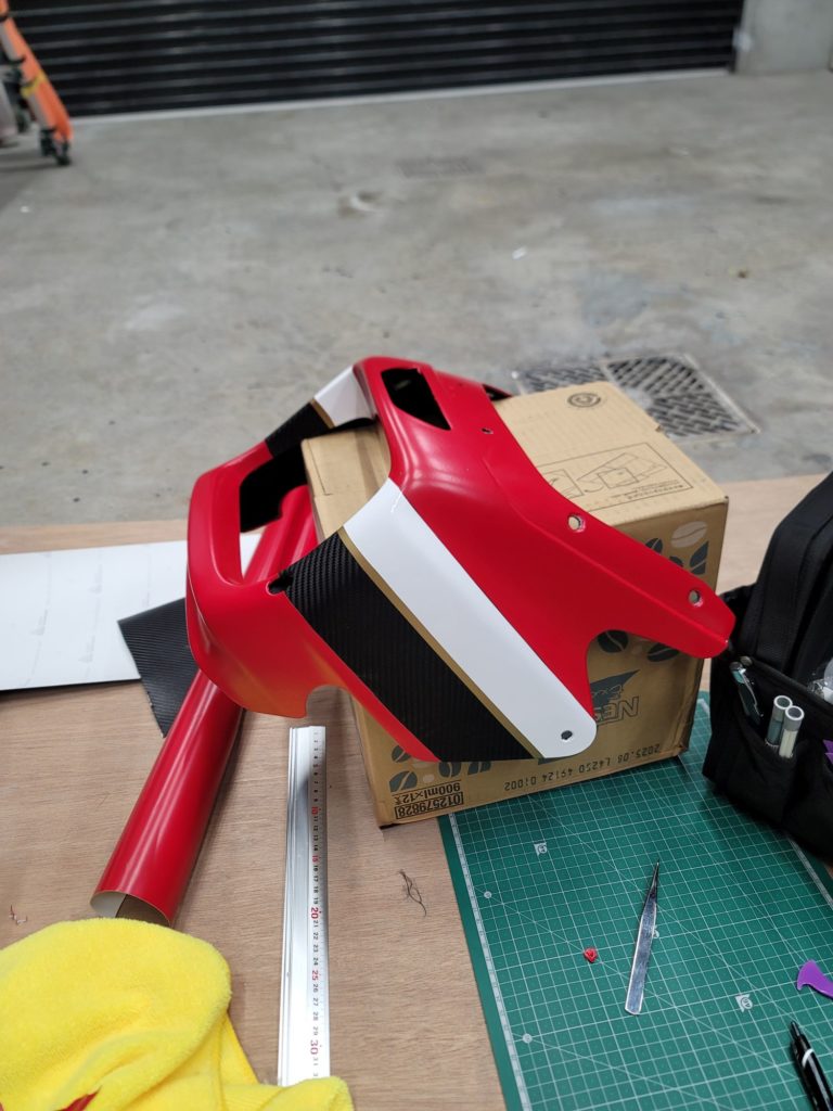 ラッピング及びPPF取り扱い開始致しました。 2025年2月8日 最終更新日時 : 2025年2月8日 akkey ラッピングにて。 元のベースが缶スプレーの自家塗装なので、ベースの悪さが若干ラッピング表面にも出てきます。 張り合わせ部を重ねずにナイフレスカッターで施工。 こちらはカーボン柄を貼ってみます。 カーボン調シートにPPFを貼ることで艶が出ます。 PPFを貼らないでも、最初っから艶が有るハイグロスカーボンも有ります。 これにカーボン柄を。 イメチェン→ラッピング キズ防止→PPF って考えて貰うと良いかと思います。